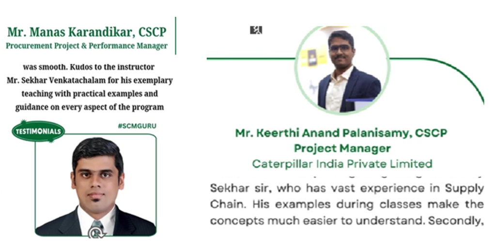 “I attended the CSCP course led by Sekhar. His real-world case studies and conceptual clarity helped me pass the exam and apply the learnings at work.”